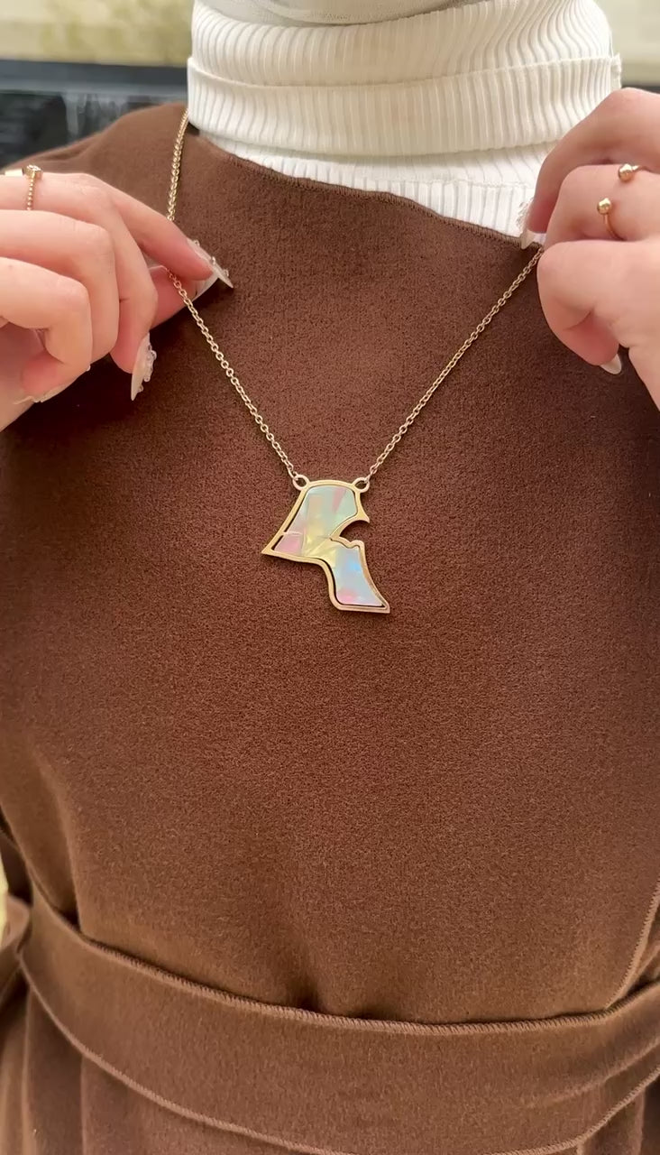 قلادة مطلية ذهب التصميم: خريطة الكويت بداخلها صدف بحر طبيعي قابل للحركة حجم ٤ سم طول السلسلة: ٧٥ سم